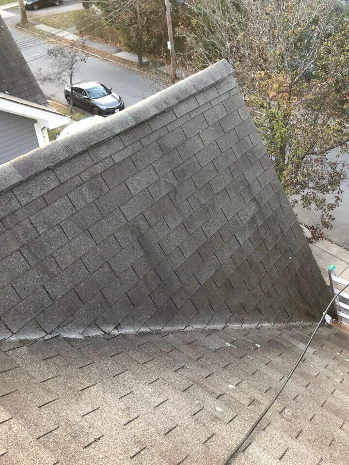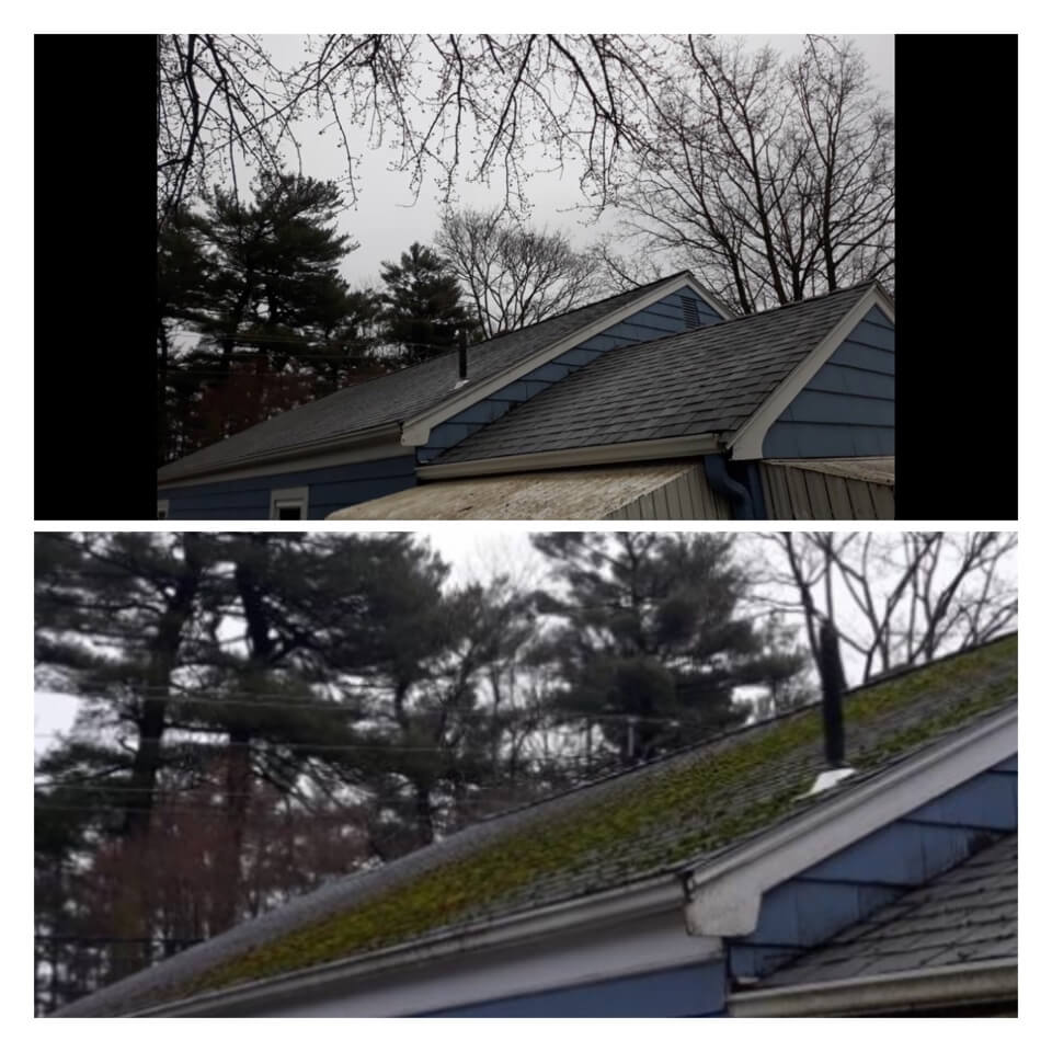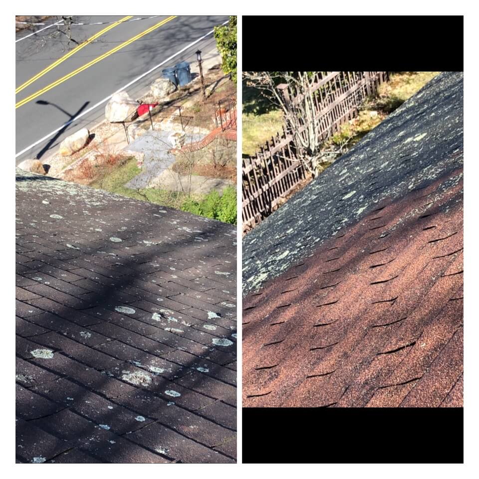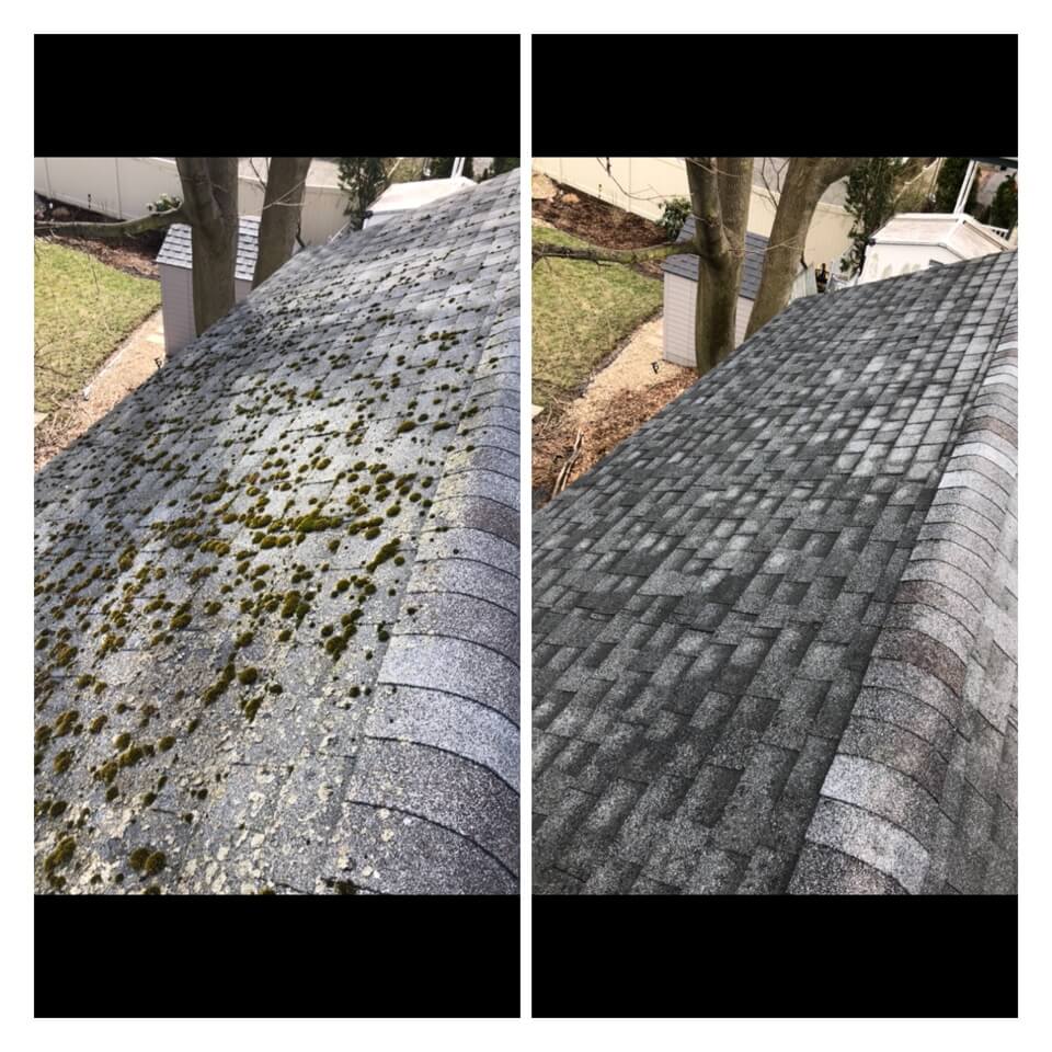 HiCleaners is the most experienced company in Dedham, MA that deals with roof washing and roof soft washing. All of our employees are trained to recognize precise solution mixing ratios to provide you with the safest and most effective soft washing service. Roofs are a commonly neglected part of a house due to the fact that most people don’t have ladders to access it, so it is very easy to just leave it alone and forget about problems that may start to arise. Just like many home owners, discoloration and small bits of moss on a roof can be overlooked because of the misconception that it is just aesthetic. However, it isn’t just aesthetic, the moss slowly lifts the granules off the shingles which in turn shorten the life of the shingle. The moss also spreads, just like any bacteria if it is left alone for too long, it can quickly become a problem that spirals out of control. Call HiCleaners for a free quote, we only use the most advanced eco-friendly solutions and equipment to make sure the job is done right, for the safety of the employees, your plants, grass, pets, and children.